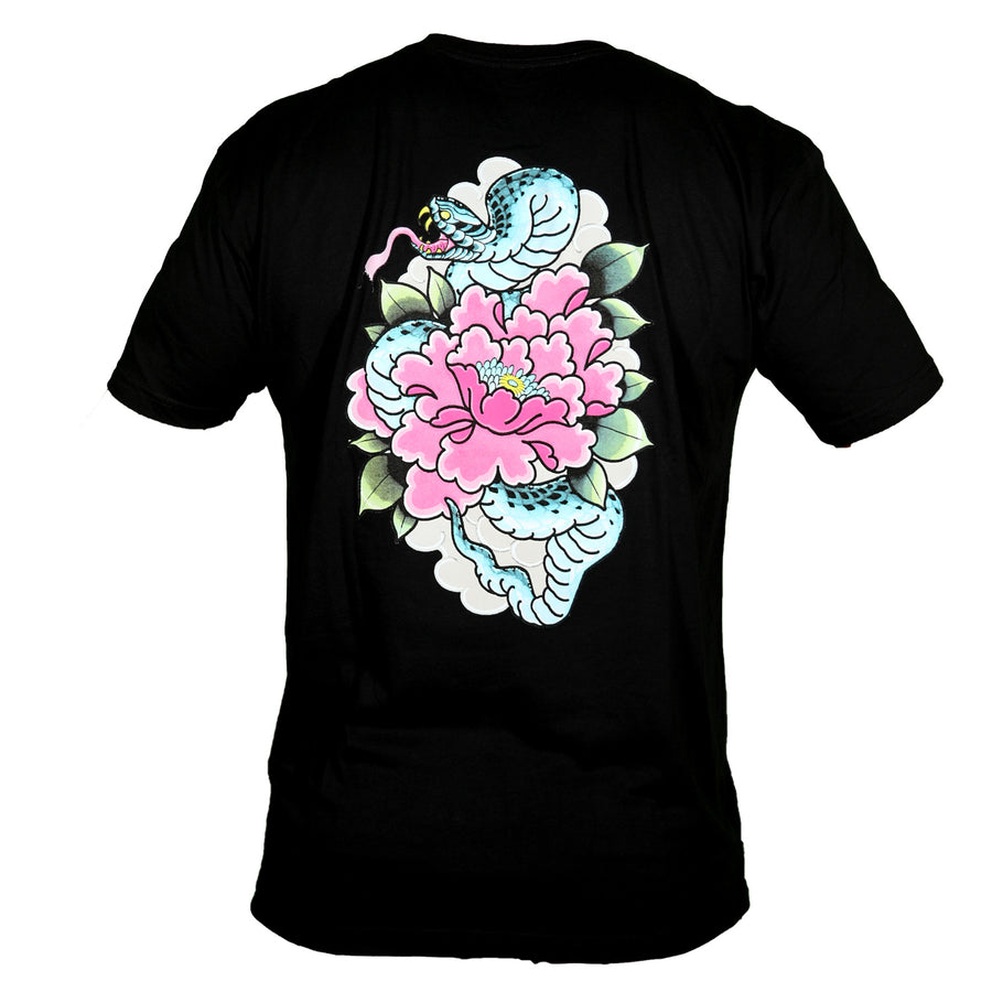 Kingpin Year of the Snake T-Shirt was created by artist Demian Thompson of The Parlour Tattoo in Eugene, Oregon and is printed locally by T-Shirt Labs on a 100% cotton shirt.