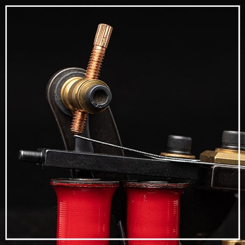 We stock only the best tattoo machine parts you'll need to build, re-build, or maintain your machine. Shop tattoo machine hardware and screws, tools, armature bars, washers and shims, springs, frame parts, front and rear binders, coil sets and coil parts, tattoo rotary machine parts, and rubber bands.